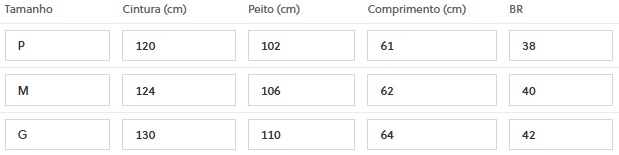 (Medidas Modelo: Busto: 84cm | Cintura: 60cm | Quadril: 96cm | Altura: 1,60cm)