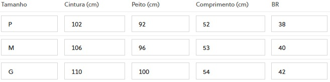 (Medidas Modelo: Busto: 88cm | Cintura: 65cm | Quadril: 98cm | Altura: 1,60cm)