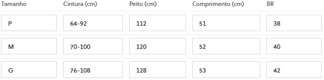 (Medidas Modelo: Busto: 84cm | Cintura: 60cm | Quadril: 96cm | Altura: 1,60cm)