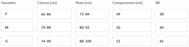 (Medidas Modelo: Busto: 84cm | Cintura: 60cm | Quadril: 96cm | Altura: 1,60cm)