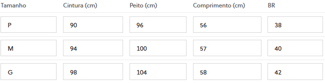 (Medidas Modelo: Busto: 84cm | Cintura: 60cm | Quadril: 96cm | Altura: 1,60cm)
