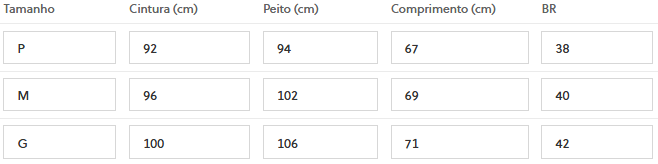 (Medidas Modelo: Busto: 84cm | Cintura: 60cm | Quadril: 96cm | Altura: 1,60cm)