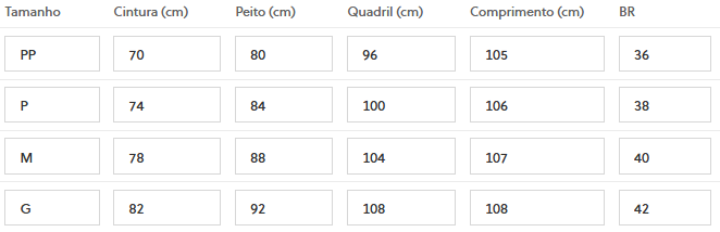 (Medidas Modelo: Busto: 84cm | Cintura: 60cm | Quadril: 96cm | Altura: 1,60cm)