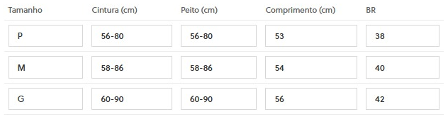 (Medidas Modelo: Busto: 84cm | Cintura: 60cm | Quadril: 96cm | Altura: 1,60cm)