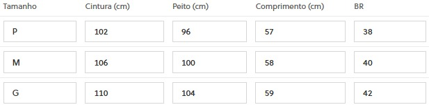 (Medidas Modelo: Busto: 84cm | Cintura: 60cm | Quadril: 96cm | Altura: 1,60cm)
