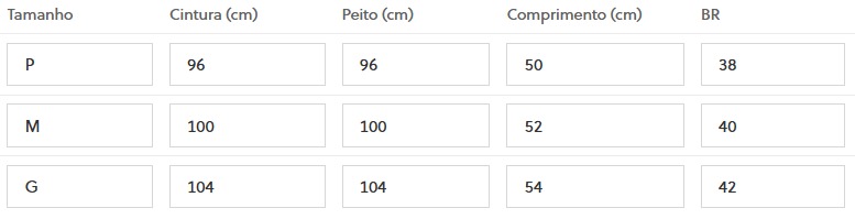 (Medidas Modelo: Busto: 84cm | Cintura: 60cm | Quadril: 96cm | Altura: 1,60cm)