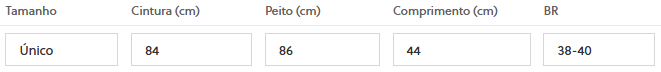 (Medidas Modelo: Busto: 84cm | Cintura: 60cm | Quadril: 96cm | Altura: 1,60cm)