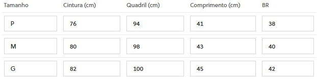 (Medidas Modelo: Busto: 84cm | Cintura: 60cm | Quadril: 96cm | Altura: 1,60cm)