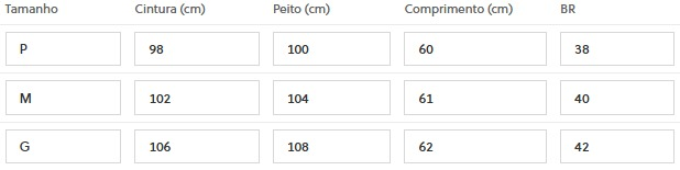 (Medidas Modelo: Busto: 84cm | Cintura: 60cm | Quadril: 96cm | Altura: 1,60cm)