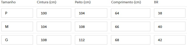 (Medidas Modelo: Busto: 84cm | Cintura: 60cm | Quadril: 96cm | Altura: 1,60cm)