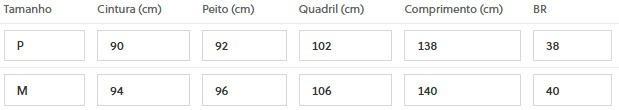 (Medidas Modelo: Busto: 84cm | Cintura: 60cm | Quadril: 96cm | Altura: 1,60cm)
