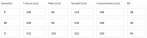 (Medidas Modelo: Busto: 84cm | Cintura: 60cm | Quadril: 96cm | Altura: 1,60cm)