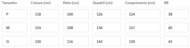 (Medidas Modelo: Busto: 84cm | Cintura: 60cm | Quadril: 96cm | Altura: 1,60cm)