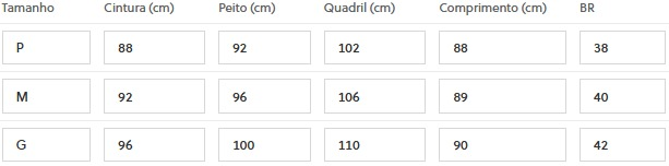 (Medidas Modelo: Busto: 84cm | Cintura: 60cm | Quadril: 96cm | Altura: 1,60cm)